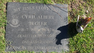 My Jesus i love thee Cyril Albert Bugler 30-7-1916 – 28-8-2006 Dearly loved husband dad and grandpa resting in the everlasting arms (Salvation Army Insignia)