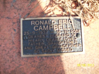 RONALD ERIC CAMPBELL 25-8-1937-18-11-2007 Dearest husband and of Hilary Dearly loved father grandfather and great grand father So sadly missed |