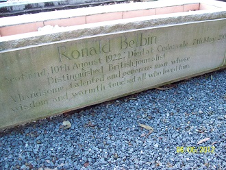 RONALD BELBIN born Glasgow, Scotland 10th August 1922 Died at Cedarvale 7th May 2001 Distinguished British Journalist. A handsome talented & generous man whose wisdom and warmth touched all who loved him. |