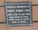 Precious memories of ROBERT THOMAS DOAK April 1916 to Jan 1990. Sadly missed by those whose lives he touched. Rest In Peace. Death Cert No. 1990/969 Parents : Robert John and Julia nee O’Brien |