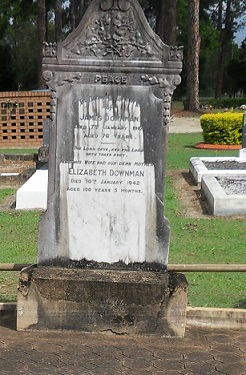 Also his wife and our dear mother ELIZABETH DOWNMAN Died 10th January 1942 aged 100 years 5 months. Death Cert No. 1942/b55217 Husband James Downman Parents William and Margaret nee Inglis |
