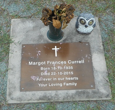 Forever in our hearts. Your loving family. Death Cert No. 1985/5636 Parents Fred Currell and Edna |