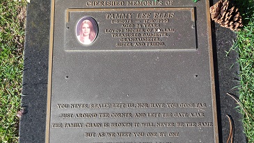 Cherished memories of TAMMY LEE ELLIS 1.6.1975-17.10.1999 Loving mother of Kaylah, cherished daughter grandaughter sister & friend. You never really left us, nor have you gone far. Just around the corner and left the gate ajar. The family chain is broken it will never be the same, but as we meet you one by one the chain will link again. |