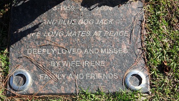 BRENDAN LAWRENCE GOODROPE 13.3.1959-22.7.2009 and BLUE DOG JACK life long mates at peace deeply loved and missed by wife Irene family and friends |