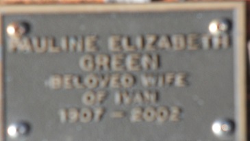 PAULINE ELIZABETH GREEN beloved Wife of Ivan 1907-2002 |