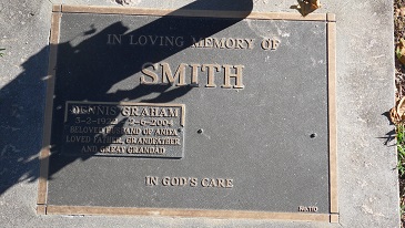 In loving memory of SMITH DENNIS GRAHAM 3.2.1922-2.6.2004 beloved husband of Anita, father grandfather great-grandad; Loved In God’s Care |