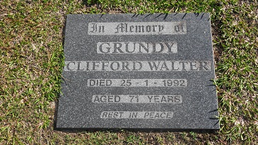 In memory of GRUNDY CLIFFORD WALTER Died 25.1.1992 71 years Rest in Peace. Death Cert No. 1992/1513 Parents : Walter Grundy and Lillian Jane nee Levytaylor. |