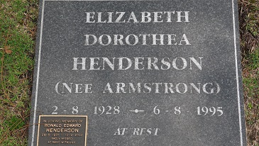 ELIZABETH DOROTHEA HENDERSON (NEE ARMSTRONG) 2.8.1928-6.8.1995 At rest. |