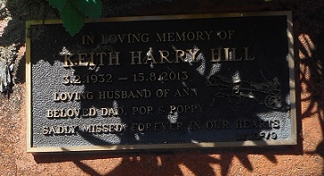 In loving memory of KEITH HARRY HILL 3.2.1932-15.8.2012 Loving husband of Ann Beloved Dad Pop & Poppy Sadly missed for ever in our hearts. |