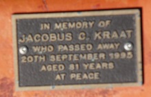 In memory of JACOBUS C KRAAT who passed away 20 September 1995 Aged 81 years. At peace. |