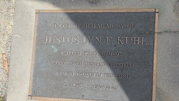 In cherished memory of JUSTUS LYN F KUHL Called home 20.9.97. Dearly loved husband of Estelle “He who trusts in the Lord is safe” Prov 29:25. |