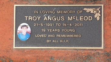 In loving Memory of TROY ANGUS McLEOD 21-5-1991 TO 15-4-2011 19 years young loved and remembered by all R.I.P. |