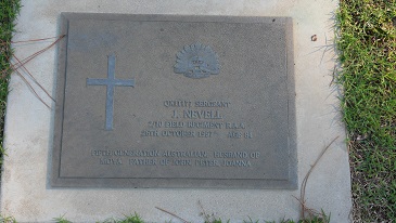 QX11177 Sargent J NEVELL 2/10 Field Regiment R.A.A. 26th October 1997 Aged 84, Fifth Generation Australian. Husband of Moya, father of John, Peter, Joanna; Parents Leslie John & Minnie Alice Lindores |