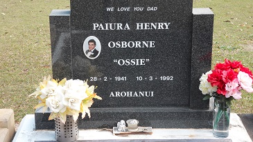 We love you dad PAIURA HENRY OSBOURNE “OSSIE” 28.2.1941-10.3.1992 Arohanui Death Cert No. 1992/2297 Parents : Turi Osborne and Teiaroa Tinua nee Ranana |