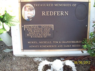 Treasured memories of MICHAEL JOSEPOH REDFERN who passed away 7th March 2009 aged 64 years beloved husband of Muriel, Michelle Tom and Grandchildren Always remembered and sadly missed. |