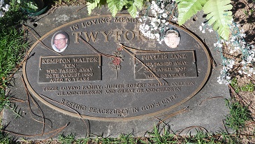 In loving memory of TWYFORD KEMPTON WALTER “KEN” who passed away 26th August 1999 aged 79 years. PHYLLIS JANE who passed away 30th April 2007 aged 85 years. Their loving family family Judith, Robert, Neville, Colleen; grandchildren & great grandchildren. Resting peacefully in God’s Care. Husband : Kempton Walter Twyford. |