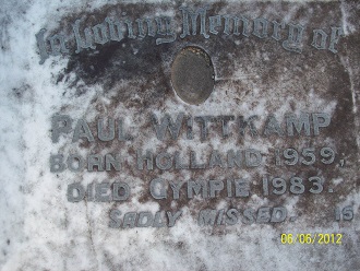 In loving memory of PAUL WITTKAMP Born Holland 1959 Died Gympie 1983 Sadly missed. Death Cert No. 1983/52566 Parents : Frans Wittkamp and Truus Yloudie |