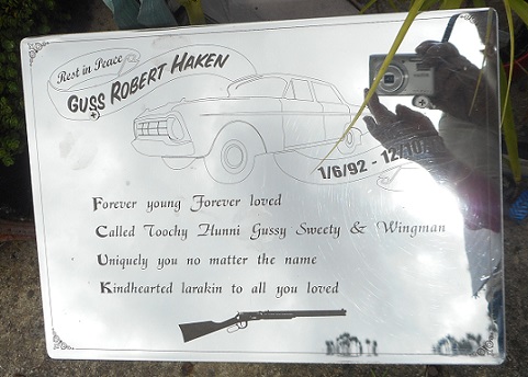 Rest in Peace GUSS ROBERT HAKEN 1/6/92-12/10/13 Forever young Forever loved Called Toochy Hunni Gussy Sweety & Wingman Uniquely you no matter the name Kindhearted larakin to all you loved. With A Chair |