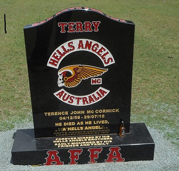 TERRY Hells Angels mc Australia TERENCE JOHN McCORMICK 04/12/58-29/07/16 He died as he lived. A Hells Angel. Forever missed by his Hells Angels Brothers sadly mourned by his friends and family AFFA. |
