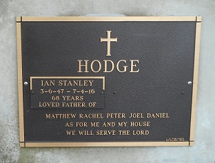 HODGE IAN STANLEY 3-6-47-7-4-16 68 years loved father of Matthew, Rachel, Peter, Joel, Daniel. As for me and my house We will serve the Lord. |