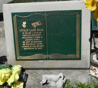 VIVIAN LANE SAAL 15.08.45 – 21.01.16 Precious Husband, Treasured Father & Adoring Poppy. Heleft us knowing he was truly loved always in our hearts Requiesc at in peace. |