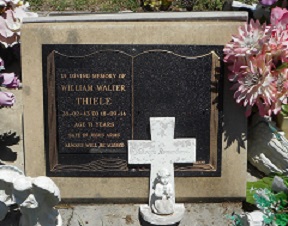 In loving memory of WILLIAM WALTER THIELE 28.02.43-18.09.14 Aged 71 years Safe in Jesus Arms Always will be missed.