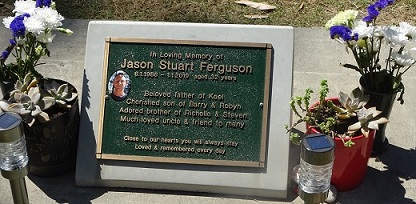 In loving memory of JASON STEWART FERGUSON 6-1-1986 – 1—2019 aged 32 years Beloved Father of Kael Cherished son of Barry and Robyn. Adored Brother Richelle & Steven. Much loved Uncle and Friend to many. Close to our hearts you will always stay, loved and remembered every day. |