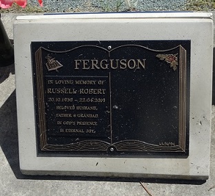 In Loving Memory of RUSSELL ROBERT FERGUSON 20.10.1930 – 22.04.2019 beloved Husband Father, and Grandad. In God’s Presence is Eternal Joy |