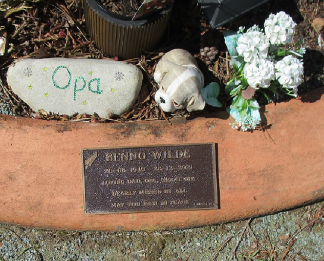BENNO WILDE 20-02-1910 20-12-2021 Loving Dad, Opa, Great Opa, Dearly missed by all May you rest in peace |